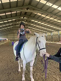 At 15hh, Cream Puff is a spring chicken and blessed with an amazing colour called a Cremello. She has what's called a 'cream gene' which can produce several different coat colours. The main effect is that the gene produces a lighter eye, skin and coat.